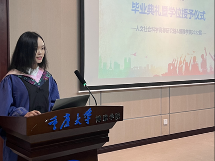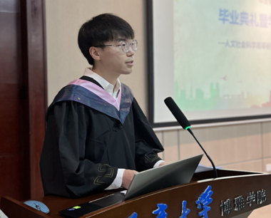 四年的学习,收获了探索与思辨的智慧、自由而卓越的灵魂以及博雅本身。无论走向何方,博雅学子始终不忘本心、永远热爱、坚定追求、勇敢实践。研究生毕业生代表罗立健也深情感恩母校,并号召全体毕业生以奋发有为的姿态,怀揣重大人的初心和梦想,以最饱满的状态奔赴自己的未来岗位。姚飞院长代表ag百家乐官网