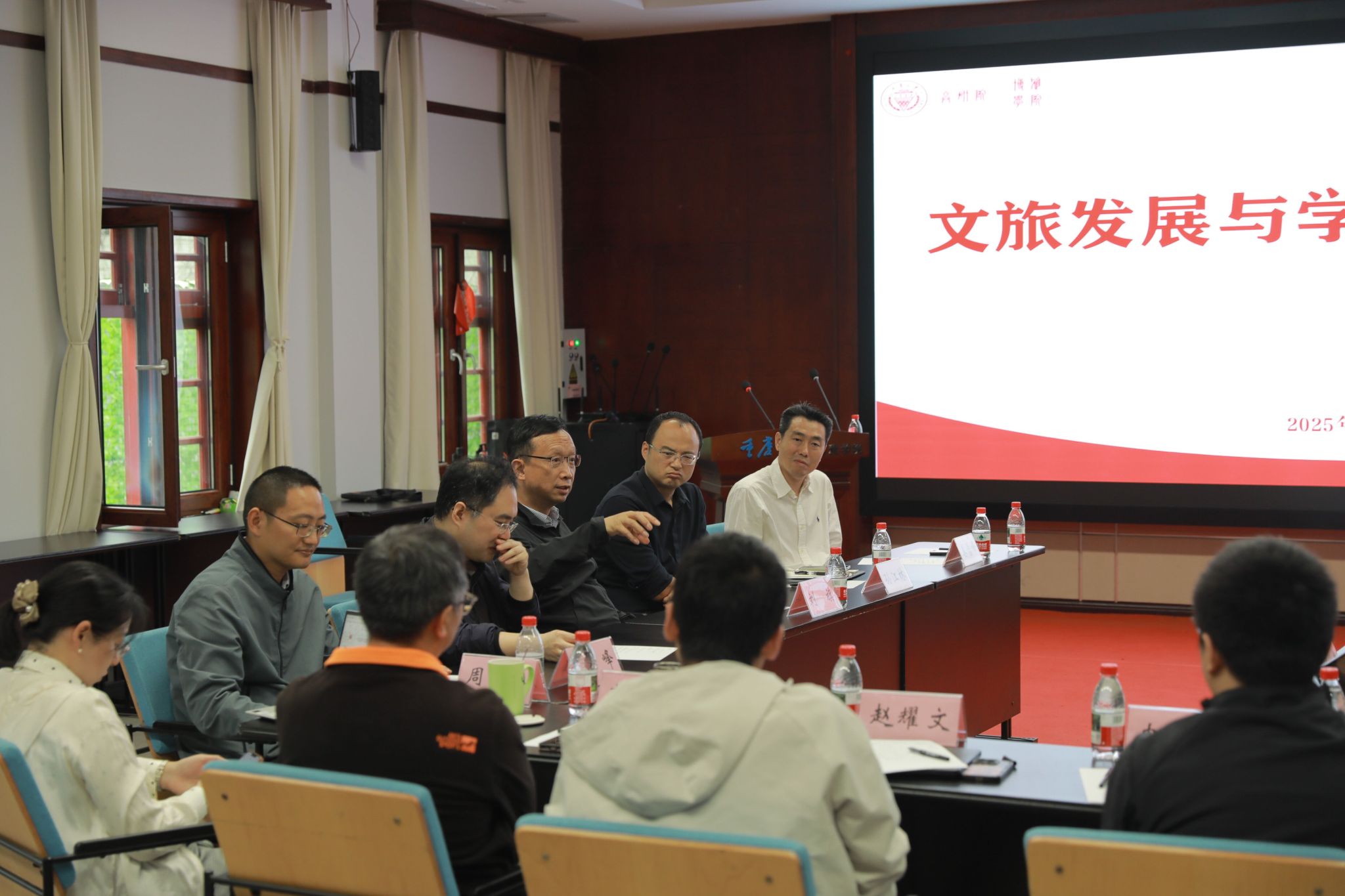 讲座结束后,刘旗移步博雅书院报告厅出席文旅发展与学科建设专题座谈会。ag百家乐官网 副院长李广益首先介绍了ag百家乐官网 建院以来的成就和师资配备。随后,双方就“文旅发展与学科建设”一题展开讨论,并以福建英歌舞、舞剧《杜甫》为例,思考“将艺术文化转化为文旅产品”的学科建设路径。针对学生社会实践环节,刘旗建议加强学校与地方政府的深度合作,依托重庆丰富的历史文化资源设计研学项目。