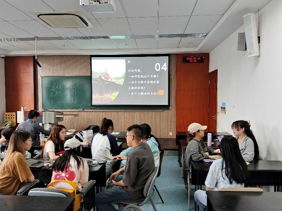 在讨论环节中,同学们根据个人所选择的就业意向,分享现阶段的准备进度,并交流过程中可能会遇到的问题,并针对遇到的问题寻找解决办法。郑雅韵、杨立武表示在当下的不确定情景中个体容易出现焦虑情绪,同学们需及时调整心态,通过做好充分准备来缓解焦虑。余乐水针对出境升学面临的消费、语言等问题表达了担忧,也提出在境外升学中需提前准备语言考试、增加实习经历等为自己提高录取机会。王玥文针对当前面临的就业形势表示需坚定自我,通过反复的尝试及沟通寻找适合自己的职位。