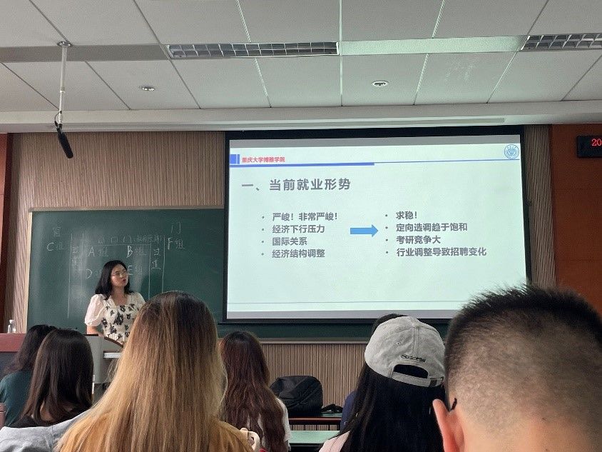 历年就业数据分析、各类别就业渠道面临的问题等角度进行了就业动员。当前就业形势严峻,同学们应根据个人需求与发展确定个人就业目标,更应将个人目标与国家发展、社会发展相结合,展现出当代大学生的责任与担当。鼓励同学们不管做何种选择都应早做准备,及时寻求社会资源,对面临的困难情况有合理预期,及时调整心态;针对就业同学鼓励大家积极实习,提升个人竞争力,学会底线思维,在遇到挫折时保持理性并及时转换方向,指出:就业并不困难,关键是我们想以什么样的方式就业。并提出同学们可积极与老师们交流,以期获取个性化就业方案。