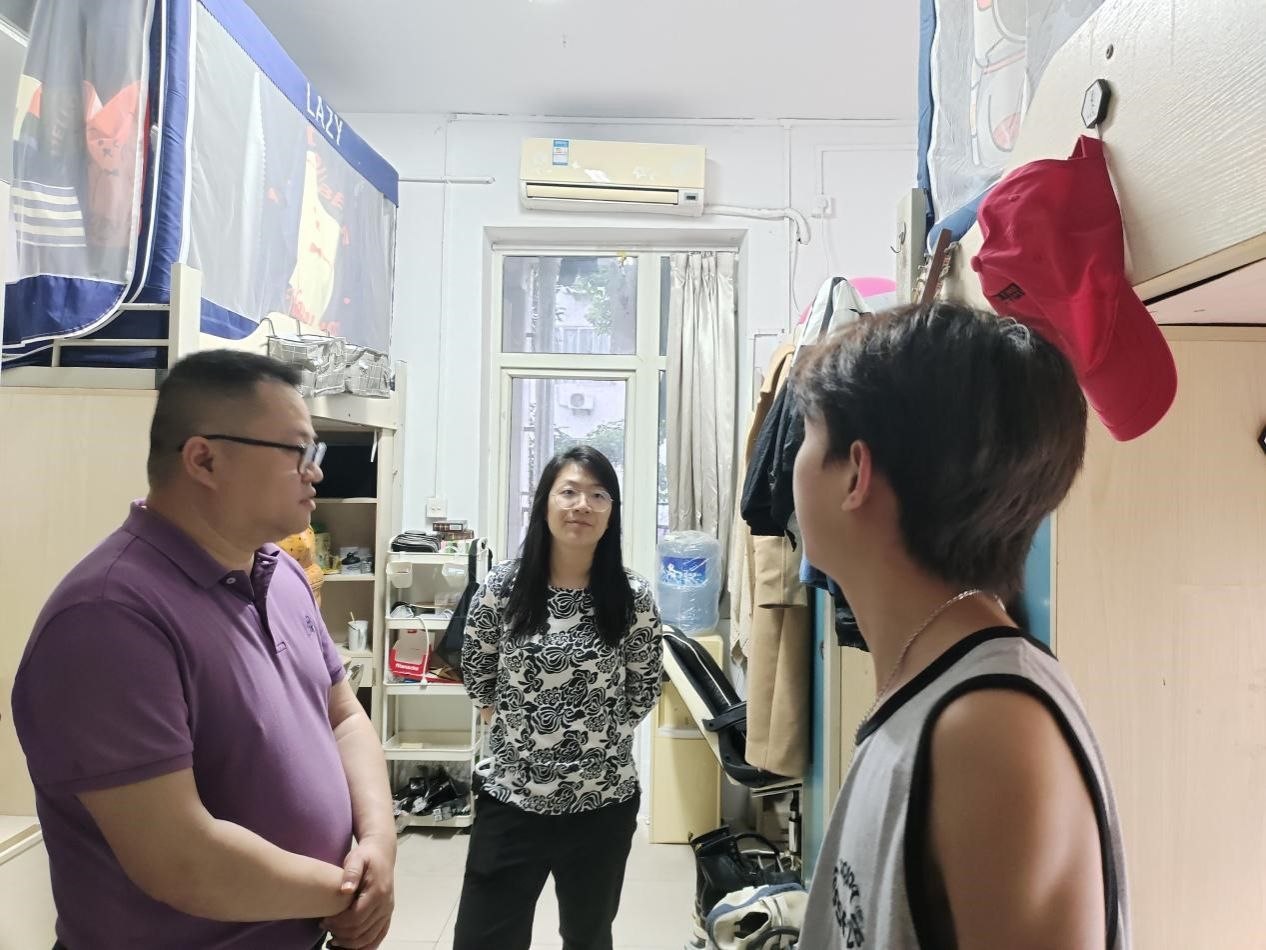老师们深入学生宿舍,与同学们亲切交谈,了解大家近期生活情况,关注同学们思想状态与精神面貌,鼓励大家保持良好学习生活状态。