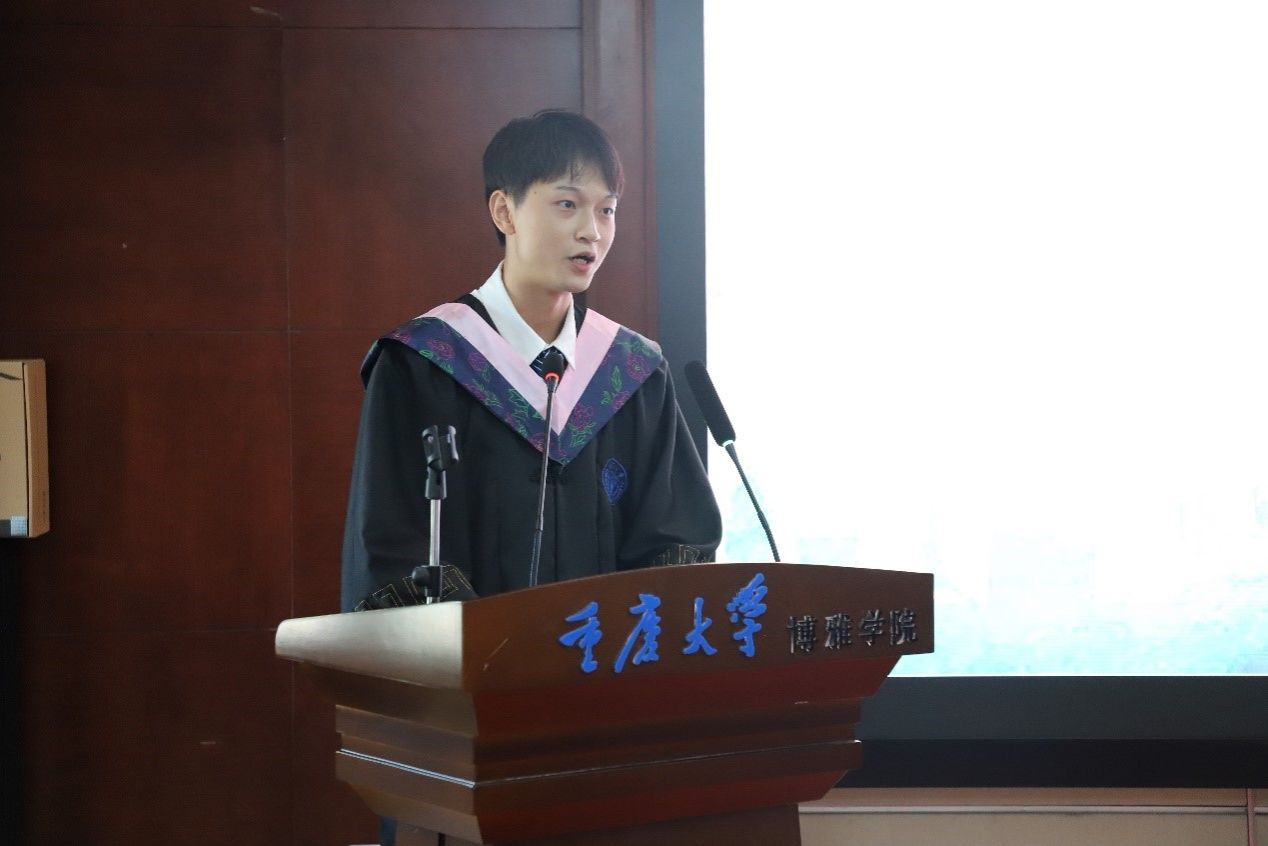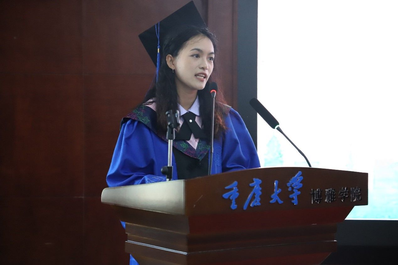在庄严的国歌声中典礼拉开序幕。姚飞院长首先致辞,祝愿每一位毕业生在人生的道路上获得辉煌的成就,希望同学们在实现个人理想的同时,始终保持初心和使命,为建设美好社会、创造美好未来而努力。其后硕士毕业生代表王梦雨和本科毕业生代表黄经宸先后上台发言,他们饱含深情回忆大学生活,表示将牢记“耐劳苦、尚简朴、勤学业、爱国家”的重大精神,在人生道路上砥砺前行。随后教师代表何祥迪进行寄语,希望大家能够“尊德性而道问学”,永远保持向上。师生代表发言过后,由ag百家乐官网