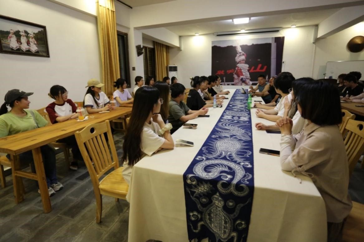 6月29日晚上,全班举行首次田野座谈会,由钟融冰老师与地方苗学人类学家安红老师主持。安老师首先介绍施洞镇的基本概况,讲解如何田野调查。随后五个小组分别就实地所见所闻所感进行分享,并提出包括施洞苗绣、施洞银饰及传承、施洞女性发型、施洞染布技艺以及施洞的商业概况在内的五个调查主题。安老师对此表示充分肯定,就选题指出有待发掘的问题导向,并强调田野调查过程中的相关注意事项。