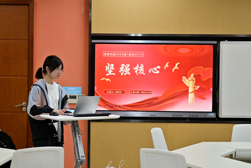 加强理论修养,坚定理想信念。各团支部认真学习了“坚强核心”的相关理论知识,了解了落实团部署的重要性。2022级团支部带领同学们回顾了党的十八大以来十三个方面的历史性成就和历史性变革,并详细讲解了“中国共产党始终成为中国特色社会主义事业的坚强领导核心”这一论断。通过回溯与总结,构建同学们对新时代社会主义建设现状的基本认识,加强同学们对社会主义现代化建设的信心,激发同学们立大志、成大才、做大事的决心。