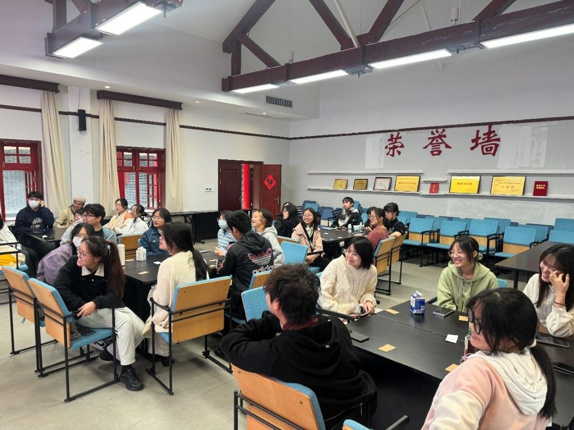 2023级2班心理主题班会活动在博雅小院报告厅举行。本次活动由班级班委共同筹划,旨在提升班级凝聚力,帮助同学们更好地适应、融入大学生活,班级全体同学参与。