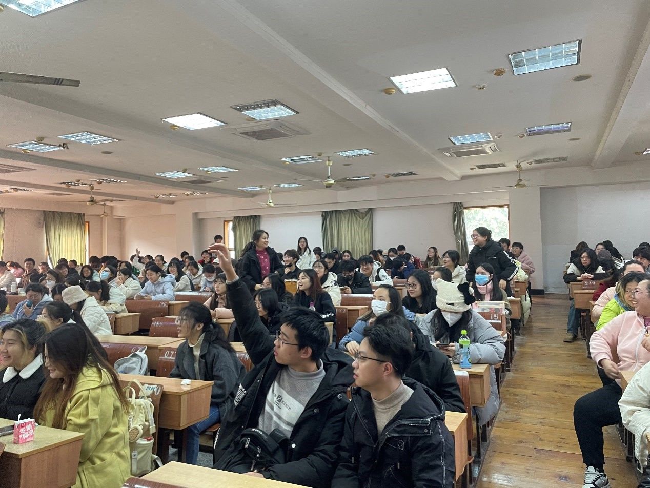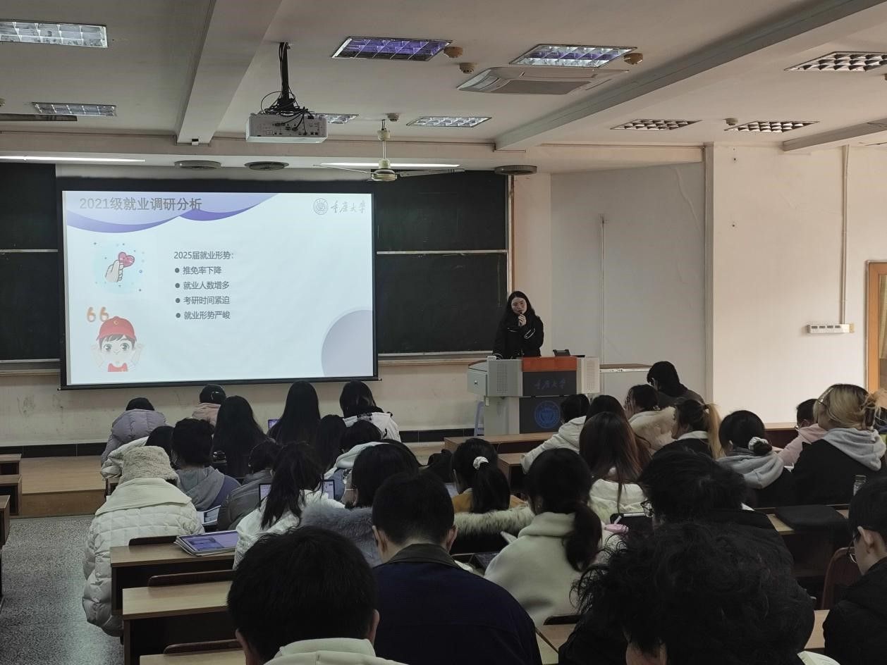 最后,高宏佳为2021级全体本科生开展就业意向动员。从当前的专业分流设置、推免比率下降、社会环境等方面为同学们分析2025届学生将要面临的就业形势,鼓励同学们尽早明确个人就业意向,早做准备;就同学们提出的就业信息少、需要就业指导与经验分享的问题做出回应,指出下学期将根据同学们的需求进行分类指导;还为全体同学加油鼓劲,期待大家都能在2024年有不一样的成长与收获。