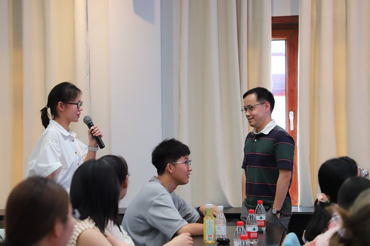 两位班主任从自身经历出发与同学们进行交流沟通。2024级1班班主任钟准提到,要认识到大学生活中学生干部经历的重要性,在大学期间多尝试,积极主动参与到各项活动中;2024级2班班主任张振则是分享自身大学经历,强调在大学生活中,应当获得除了知识技能以外的其他经历,实现自我成长。