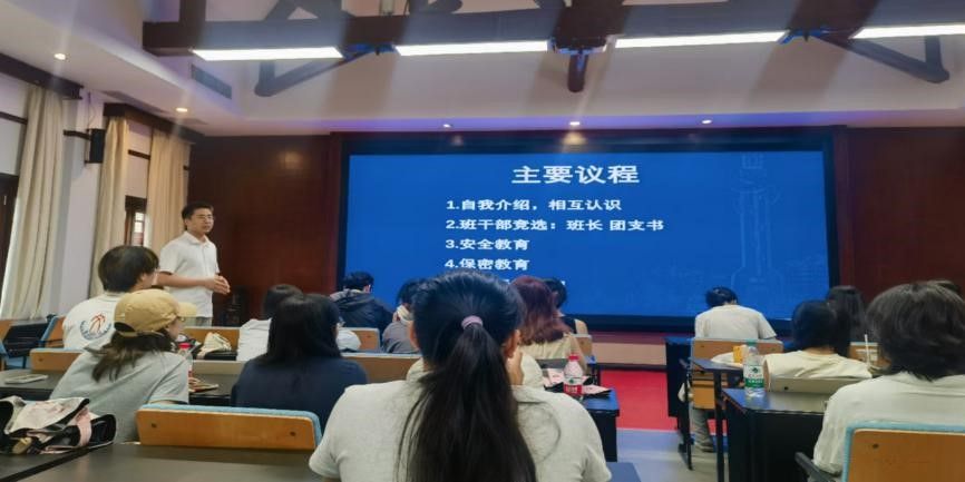 学子初聚首,迎新启智途。班会伊始,辅导员朱老师首先对新同学的到来表示热烈欢迎,同时向新生介绍自己的工作内容,并进行了学生社团组织与就业形势指导等方面的相关经验分享,勉励新生在研究生生活中做到“群居不倚,独立不惧”,获得新成长。接下来,同学们按顺序依次进行自我介绍,展示自己的性格特点、兴趣爱好和学术方向等,交流氛围十分融洽。