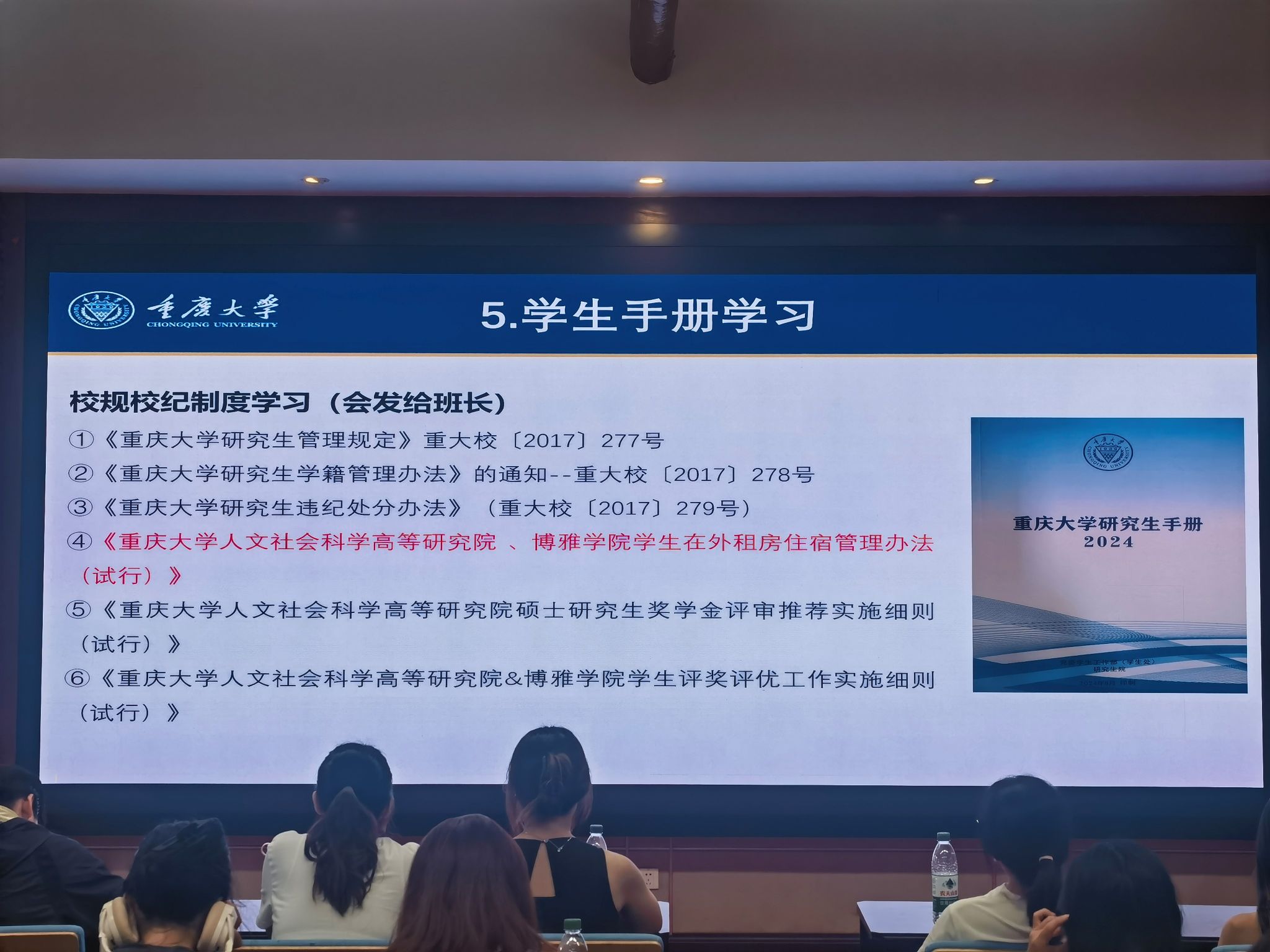 至此,高研院2024级研究生第一次班会圆满结束。相信在此次班会后,大家定能在未来的学习旅程中积极探索,追求卓越,以青春之笔在重大绘就属于自己的生活新篇章。