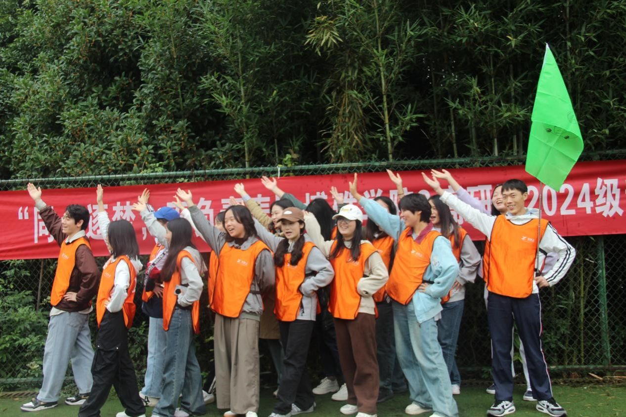 活动当天一早,在樵坪山的静谧林间,首先进行的是开营破冰环节。全体学生进行了随机分组,并为自己的小组命名、制作队旗、制定口号,最终拍照留念。每个人都积极参与讨论,每一个趣味十足的队名都凝聚着同学们的思维结晶,充满奇思妙想。