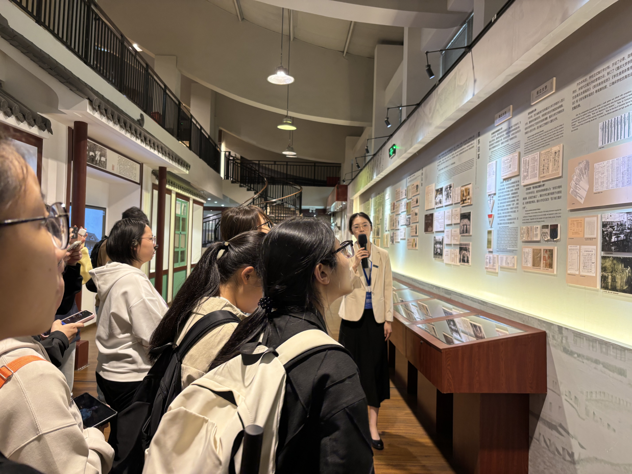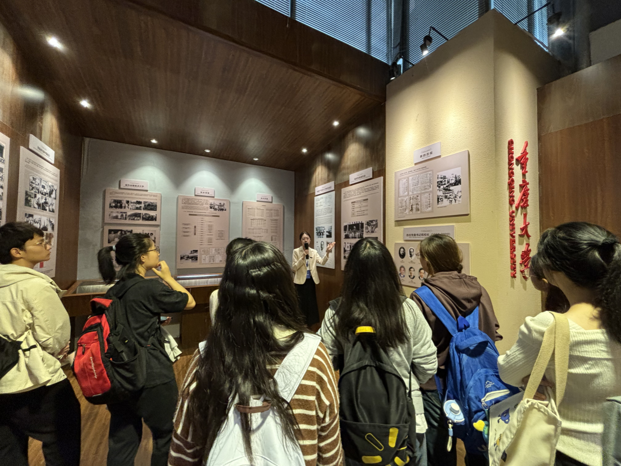 在第一展厅“初创廿年,西南风声”,同学们仿佛穿越时空,见证了学校创建初期的艰辛历程,看到各界人士怀着坚定信念,为了建设学校的理想目标和教育事业的长远发展不懈努力,克服重重困难,打下坚实基础。