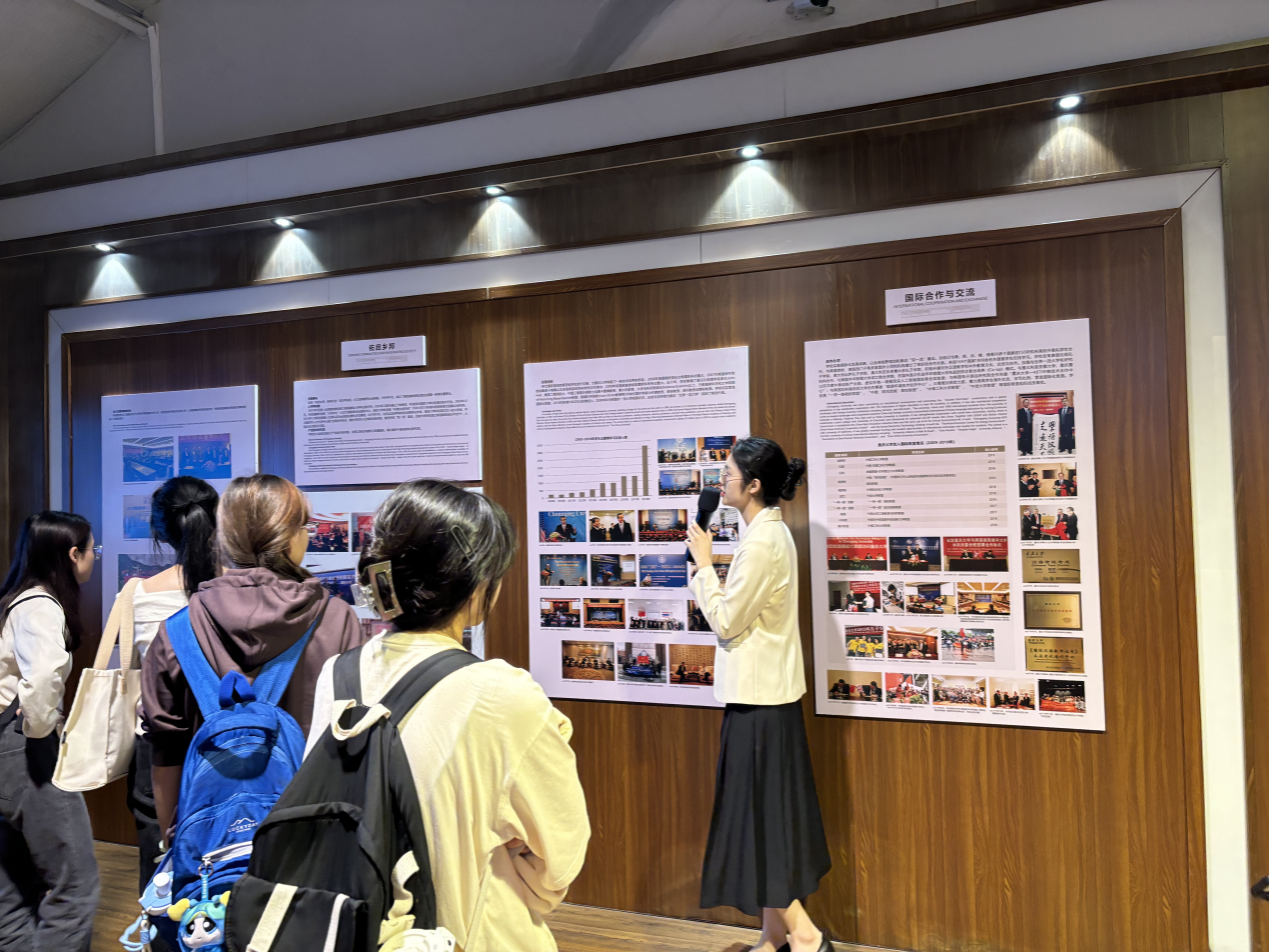 拾级而上,同学们来到第二展厅“开拓改革,锐意进取”,这里展示了重庆大学的发展历史和重大成就。新中国成立后,重庆大学成为重点大学,承担了重要的学术研究任务。讲解员着重介绍了重大ICT中心及其成立意义,让同学们认识到学校在科技创新前沿的卓越成果。