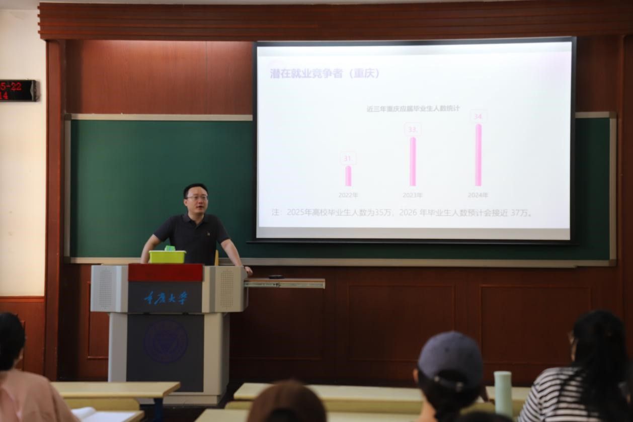 举办“文史哲硕士公考规划与备考策略”专题讲座。中公教育任老师结合重庆市公考最新政策与考情变化,系统分析报考优势与竞争态势,在激发考生热情的同时,重点讲解了备考方法、复习规划及应试技巧,帮助学生厘清备考思路,制定科学复习方案。