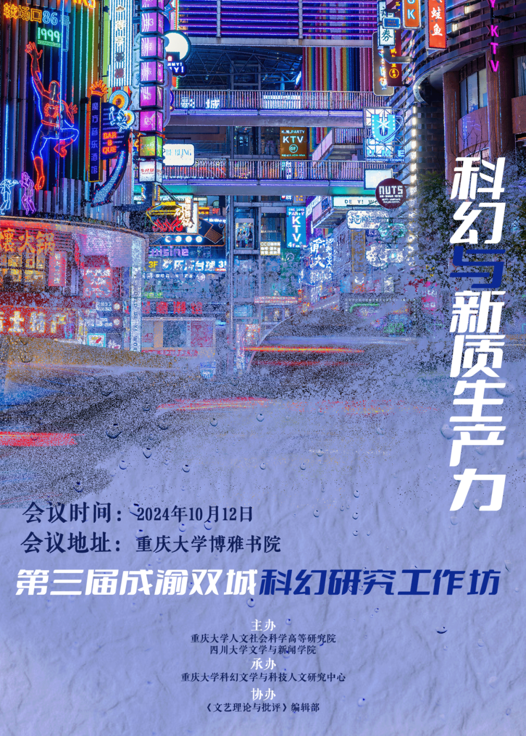 将以“科幻与新质生产力”为主题,于2024年10月12日在重庆大学举办第三届“成渝双城科幻研究工作坊”。本次会议将汇集来自重庆、成都以及全国各地高校和研究机构的专家学者,分为12个分论坛展开讨论和交流。