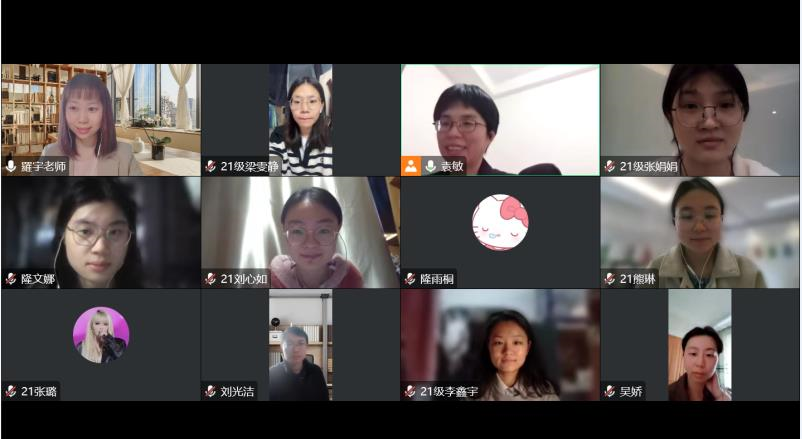 27日上午,研讨会在线上如期举行。来自中国古代文学、汉语言文字学、文献学等研究方向的师生共计16人在本次研讨会上发言,另有中文系其他方向数名同学旁听。上述研究方向的2021级硕士研究生分别围绕拟开题的论文题目、要处理的核心问题、基本思路和主要文献进行了汇报,随后研究相关领域的教师作为评议人发言,其他师生围绕该题目自由交流。