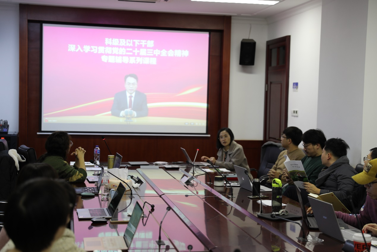 会议的第二项议程为政治学习,万曼璐老师带领全系教师共同学习了党的二十届三中全会精神,并围绕其中全面深化改革等内容展开研讨。