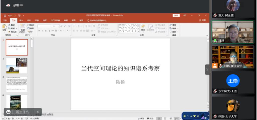 2022年11月24日晚,文字斋讲座第127讲、空间与修辞系列讲座第一讲“当代空间理论的知识谱系考察”在线上成功举行。本次讲座由重庆大学空间与修辞研究中心主办,中心主任刘扬教授主持,邀请到复旦大学中文系博士生导师陆扬教授主讲。来自各大高校的两百多名师生参与了本次讲座,并展开了交流对话。