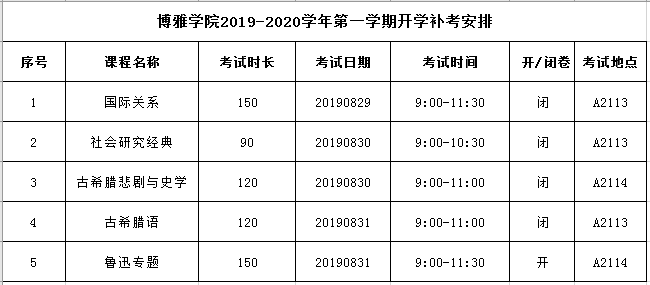 ag百家乐官网 2019-2020学年第一学期开学补考安排如下: