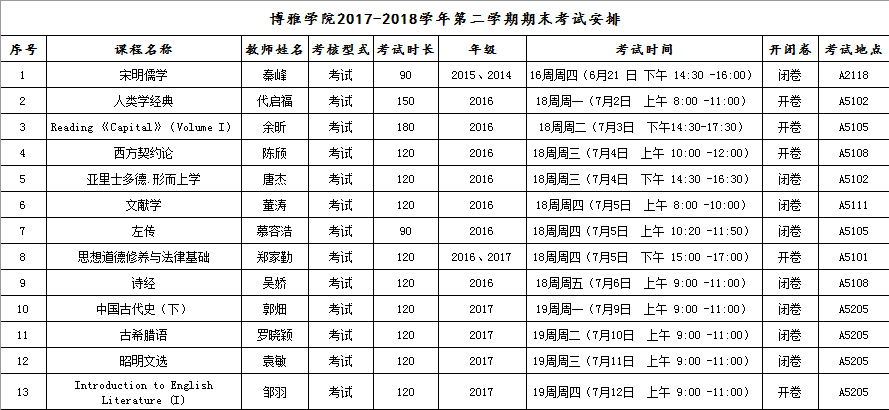ag百家乐官网 2018年春季学期期末考试安排
