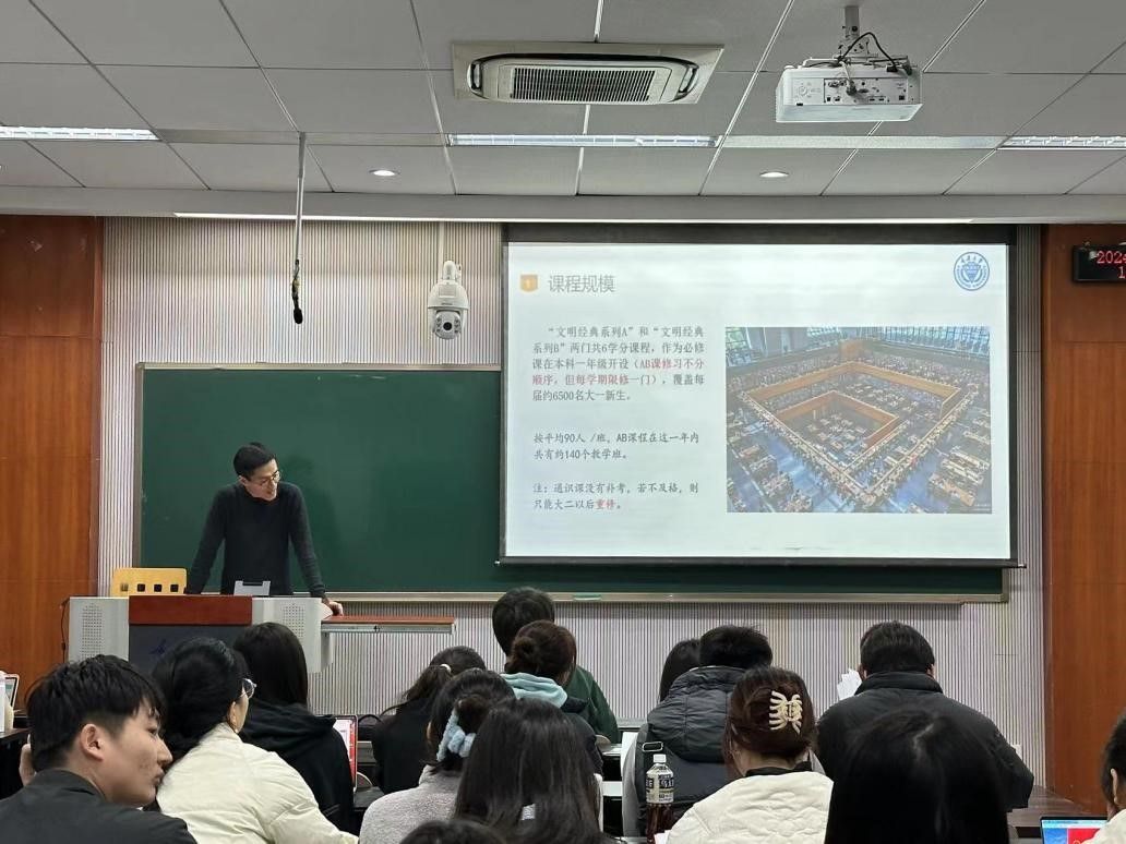 2024年3月10日,文明经典课程春季学期助理讲师第一期线下培训活动于重庆大学A区顺利举办。本次培训内容涉及多个方面,包括文明经典课程介绍、助理讲师工作职责、读书报告批改要求、悦读平台操作演示等。本次活动由课程管理组林文雪主持,共有四十余位研究生同学参加培训。