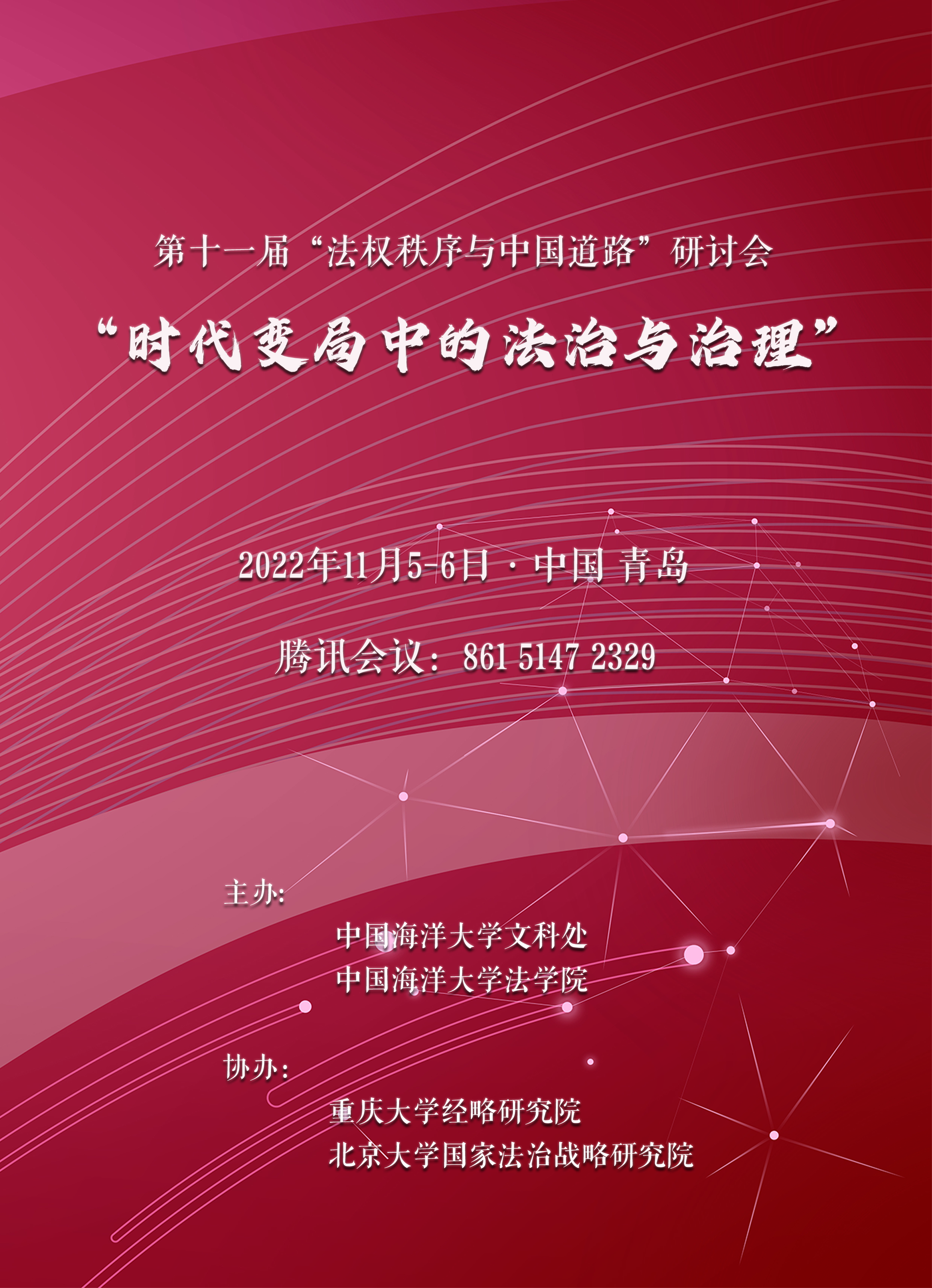 “时代变局中的法治与治理”学术论坛暨第十一届“法权秩序与中国道路”研讨会议程举办单位:中国海洋大学文科处、中国海洋大学法ag百家乐官网 协办单位:北京大学国家法治战略研究院、重庆大学经略研究院腾讯会议号:861 5147 232911月5日开幕式 9:00-9:30 主持人:李晟(中国海洋大学法ag百家乐官网 )致辞人: 强世功(北京大学社会科学部部长)李广益(重庆大学人文社科高等研究院副院长)金天宇(中国海洋大学文科处处长)主旨演讲 9:30-10:00...