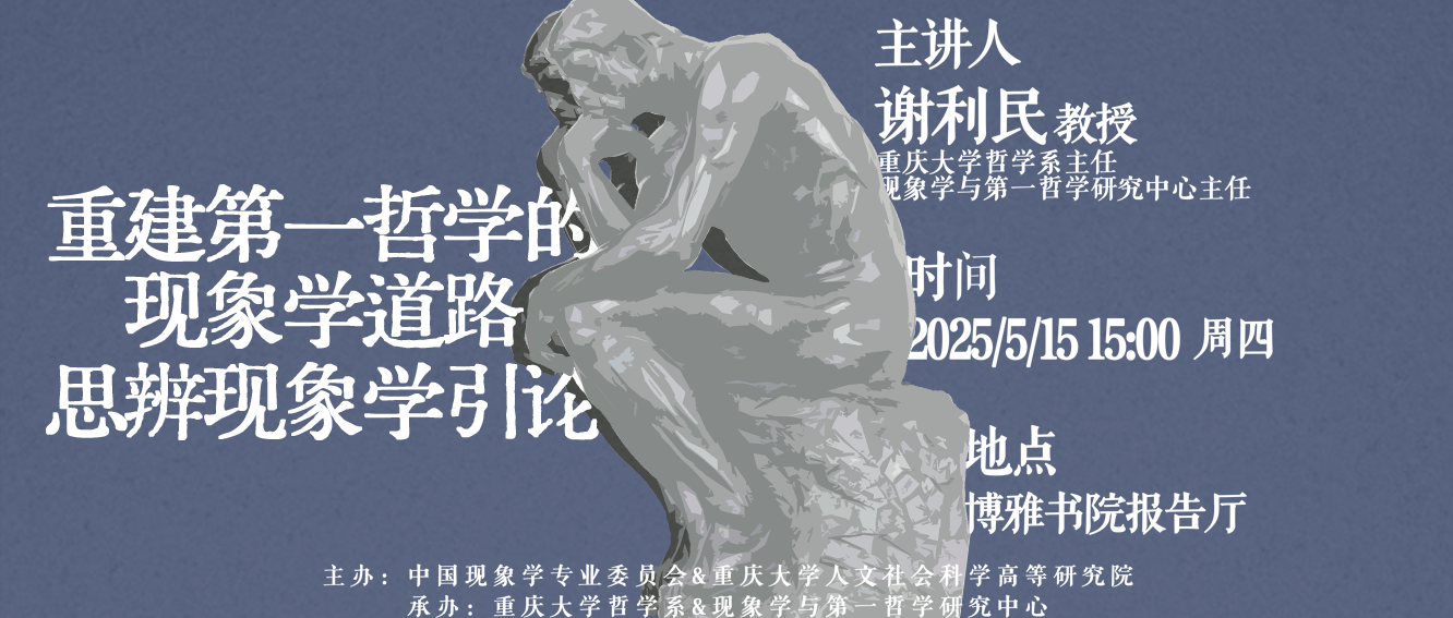 2025年5月24日至25日,由中国现象学专业委员会、重庆大学人文社会科学高等研究院主办的“第四届西部现象学论坛:现象学与第一哲学”在重庆大学A区成功召开。